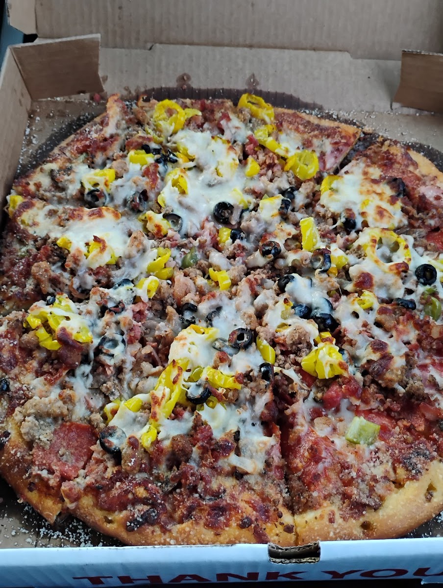DELICIOUS! Heavy on the toppings while the integrity of the crust remains intact. I appreciate that the crust wasn’t slimy and super thin like other restaurants when there is an abundance of toppings. I called my order in and they were very patient while I ordered. Order was completed in the time frame they provided me! I’ve had them DoorDash as well. When my pizza was delivered, they made sure the box doesn’t get tampered with by putting packaging like tap to keep the box closed. That is very appreciated!